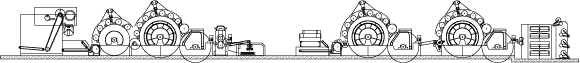 - Automatic hopper feeder - 1st inlet unit - Breast - 1st carding group - Cleaner unit (peralta) - Underground conveyor - 2nd inlet unit - 2nd carding group - 3rd carding group - Double tape condenser with single lace and traversing creel