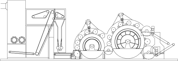- Silo for the automatic card feeding - Automatic volumetrical feeder - Inlet unit - Breast - First unit - Fly combs and belt conveyors